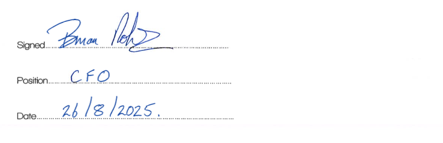 This statement has been formall!d approved bbl the Board of Directors and signed on their behalf.